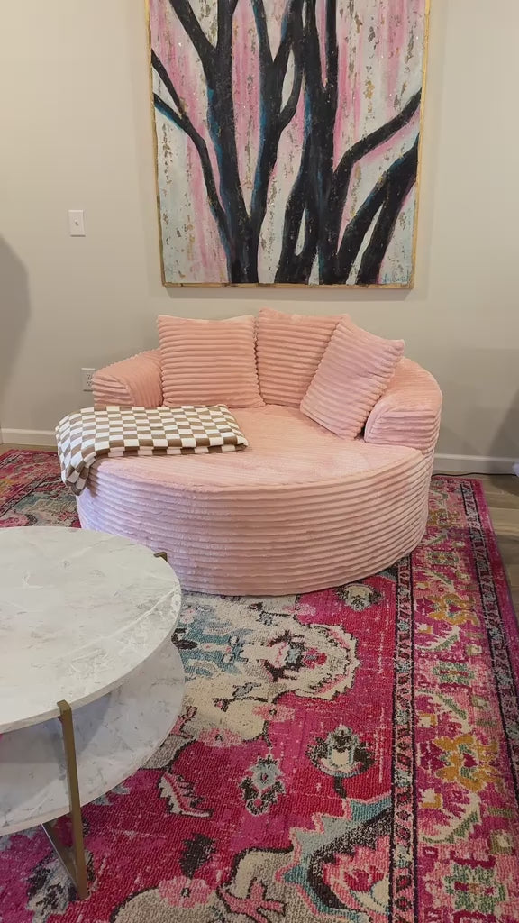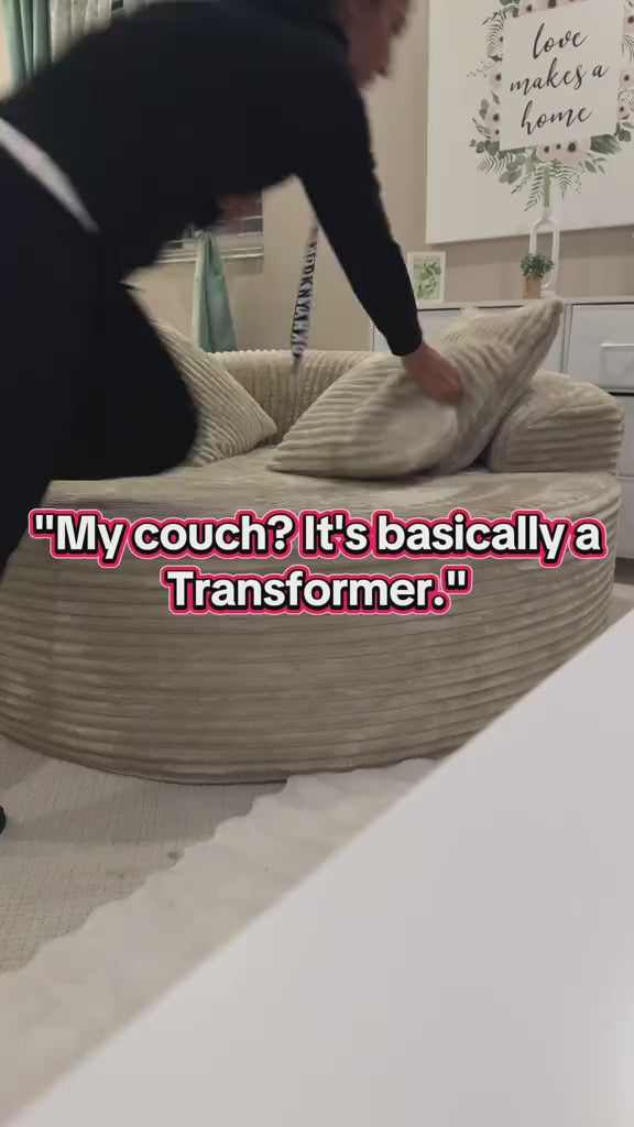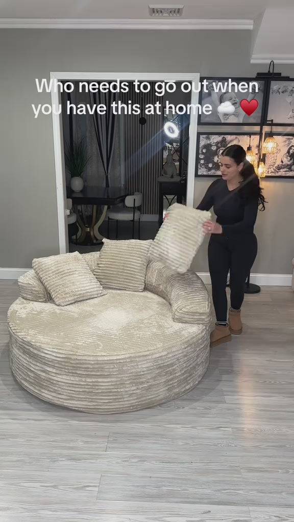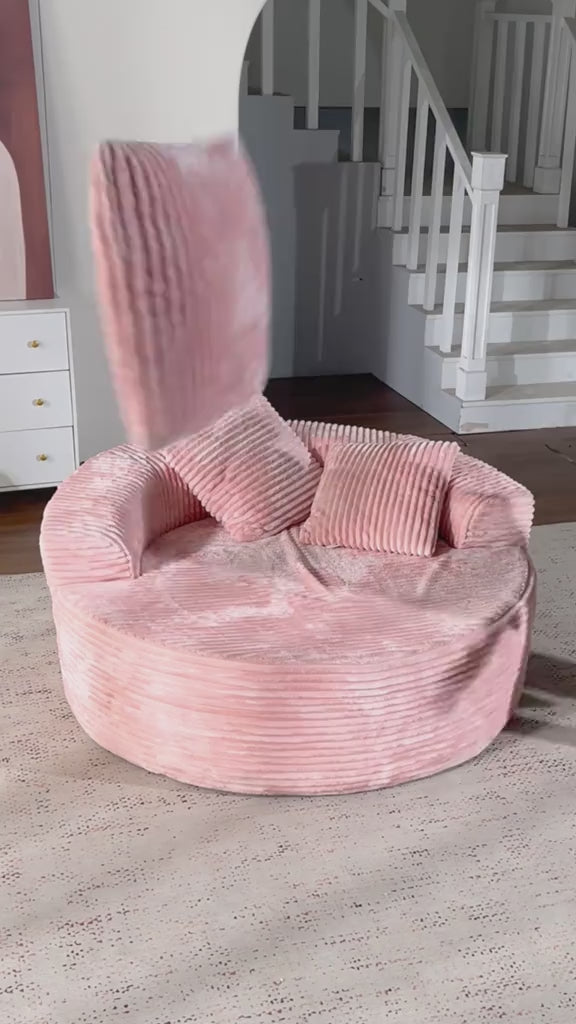 This oversized round sofa bed is designed to give you the ultimate lounging experience. With its deep, cushioned seat and plush upholstery, it creates a soft embrace that invites you to curl up with a book, relax with loved ones, or even stretch out for an afternoon nap. Its circular structure offers a modern touch that elevates any living space while still being practical and functional.